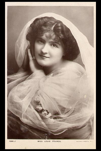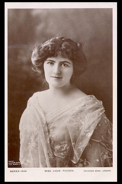 Louisa Emma Amelia "Louie" Pounds was born on February 12, 1872 in Brompton, London. Her first professional engagement was in 1890 when she joined a provincial tour, managed by the impresario, George Edwardes. The following year, she made her London debut in Joan of Arc at the Opera Comique. For the next decade, she worked continuously in a string of theatres and in 1895 was on tour in America.