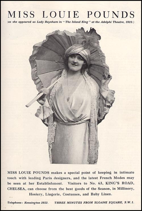 After a long and successful career she decided to retire in 1923 - the year in which this advertisement for a dress-designer appeared.