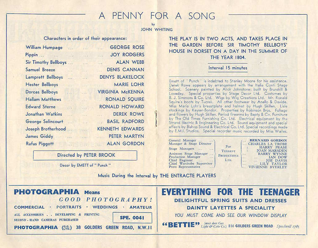 | Centre page of the program for A Penny for a Song (1951) |
