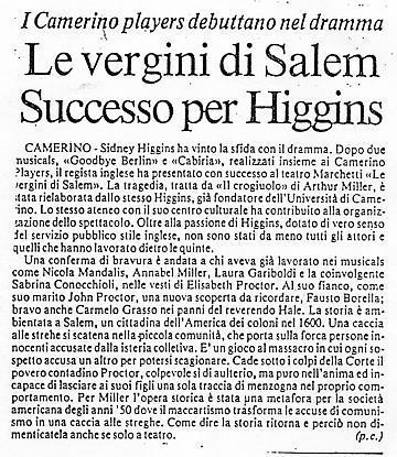 lavoro di Arthur Miller “Il Crogiuolo” presentandolo sotto il titolo di